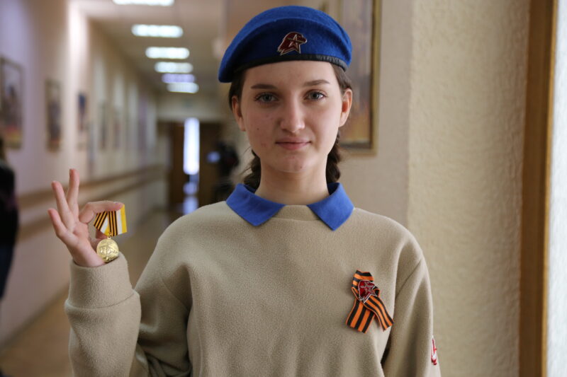 А ребята действительно гордятся и этой наградой, и своей страной. И своими славными прадедами – солдатами-победителями. Они и сами готовы защищать Родину. Как вот эта девушка на фото. Софья Снегирева учится в 9-м классе школы №7. В юнармейском движении полтора года, чуть меньше – в архиерейском казачьем конвое, профессионально занимается спортом, готовится к поступлению в военное авиационное училище. Это осознанный выбор.