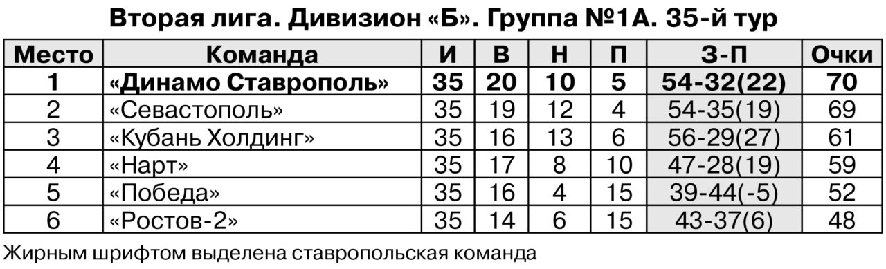 Спустя пять минут после фразы Ашамаза Шакова любой, кто проходил мимо раздевалки игроков «Динамо», мог услышать, что значит радоваться на полную катушку. «Сине-бело-золотые» узнали, что игрок «Севастополя» на 90+5 минуте срезал мяч в свои ворота, тем самым завершив встречу в Крыму вничью, выведя ставропольский коллектив на первое место. Ваш покорный слуга узнал эту новость, как раз проходя мимо раздевалки «динамовцев». Теперь нашим парням нужно выиграть в Черкесске у «Нарта» 22 ноября в 14:00, тем самым впервые с 2004 года взяв титул, завоевав также путевку в «Серебро». Всё в руках и ногах игроков «Динамо Ставрополь». В одном шаге…
