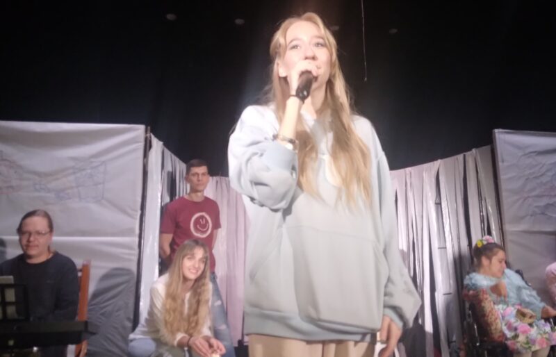 Лично меня поразило то, что профессиональные актеры разделили сцену с участниками студии «Зазеркалье» – людьми с ментальными особенностями. Студия более 10 лет работает на базе психиатрической больницы. Как об одном из новых форматов реабилитационной работы говорил в тот же день и Олег Боев. Он отметил, что инклюзивные форматы активно развиваются в мед-учреждении.