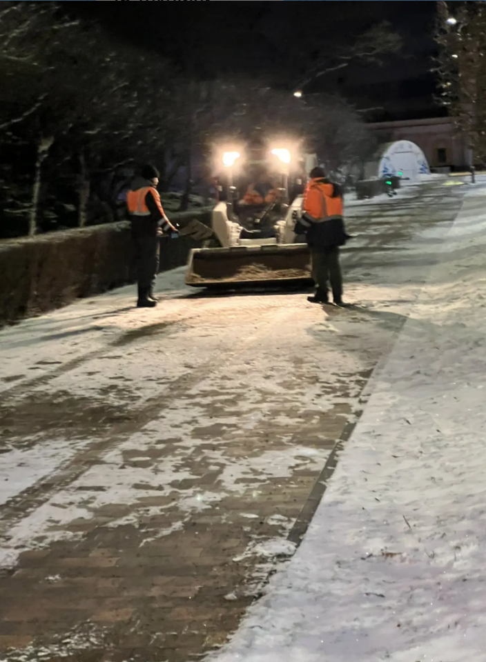 Для предотвращения образования гололеда и обеспечения безопасного передвижения по тротуарам и дорогам было использовано около 2000 тонн песчано-солевой смеси.