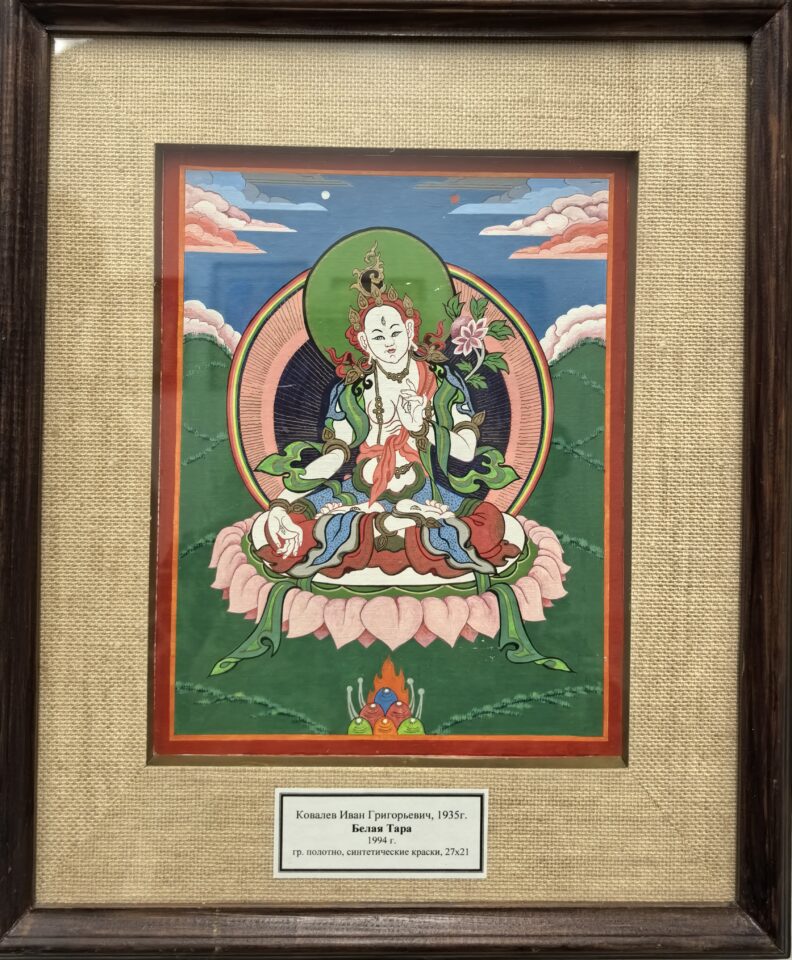 Однако поистине уникальным направлением творчества Ивана Григорьевича Ковалева стала тханкопись – традиционная тибетская иконография, сакральное буддистское искусство, особо почитаемое в Калмыкии.