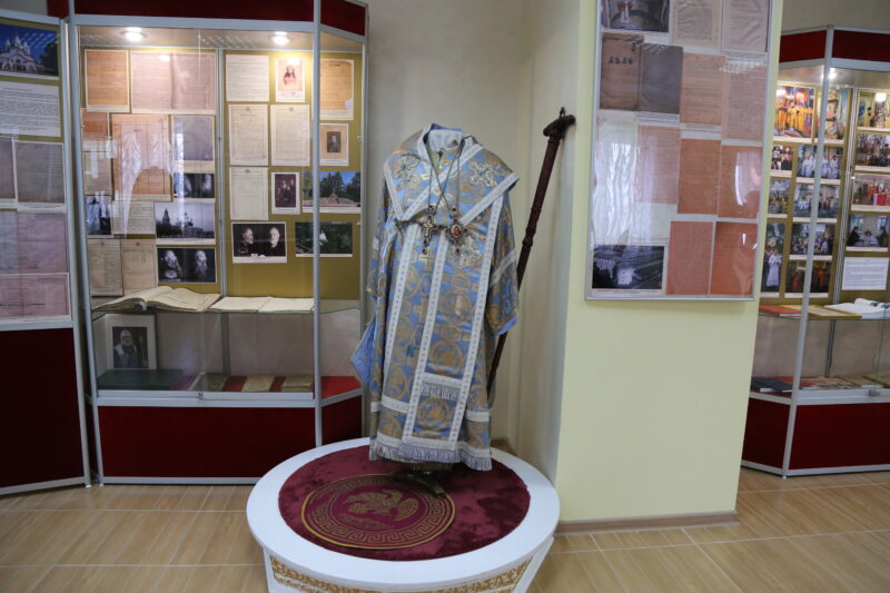 Лики святителей и священномучеников представлены в холле краевого архива и как бы предваряют знакомство с документами экспозиции. Там же размещена и карта нашего края, подготовленная сотрудниками музея имени Прозрителева и Праве, где отмечены центры, пути и вехи миссионерского и духовного служения этих четырнадцати священников и просветителей.