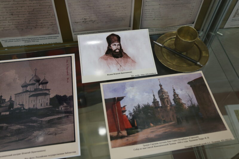 На выставке представлено фото иконостаса в Успенском храме Ставрополя, который ставропольцы видели и знают. Он сохранен. Этот иконостас был создан по благословению епископа Игнатия и проектировался при его личном участии. Точно так же – при его личном участии архитектором Воскресенским проектировалась колокольня Казанского кафедрального собора. То, чему его когда-то учили в военно-инженерном училище, святой аристократ Брянчанинов никогда не забывал.