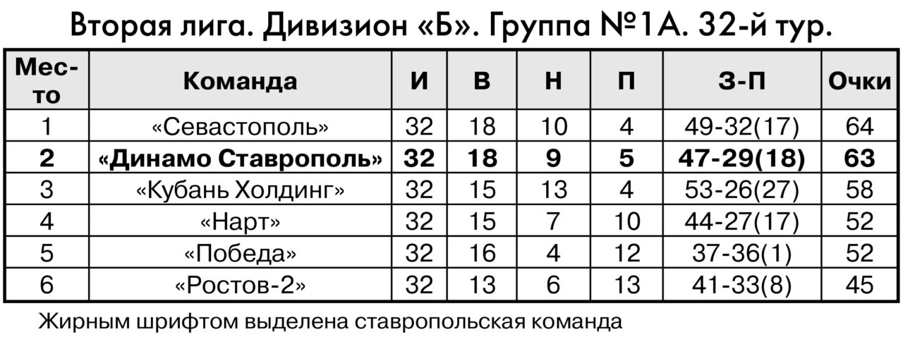 Ничья отбросила «Динамо» на второе место. «Севастополь» дома минимально обыграл «Ростов-2». 1 ноября «сине-бело-золотые» и «моряки» разыграют в Ставрополе золотые медали. Да, после их очной встречи еще состоятся три тура, но практически на 90% чемпион будет определен в первый день последнего месяца осени. 15:00, стадион «Динамо». Все на футбол, невзирая на холод!