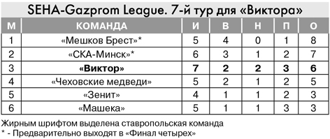 Следующий матч «Виктор» проведет 15 декабря, отправившись в гости к «Пермским медведям». 21-го числа ставропольские гандболисты в Подмосковье поборются с «Чеховскими медведями» – эта встреча пойдет и в зачет SEHA-Gazprom League. Закончит год «Виктор» 27 декабря в Астрахани игрой с местным «Динамо» в рамках 1/8 финала Кубка России.