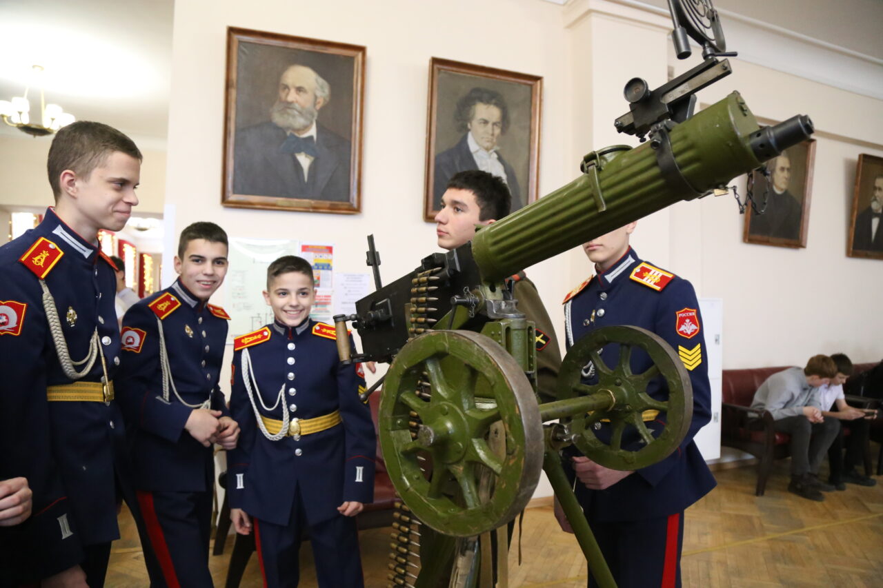 Фойе Ставропольской краевой филармонии в этот день было наполнено непривычной для храма искусств «музыкой» – тут бряцало оружие: щелкали затворы винтовок, предохранители пистолетов и других видов оружия. Каждый экземпляр – свидетельство истории, которую здесь можно было потрогать руками. Выставка образцов вооружения времен Великой Отечественной войны была развернута прямо под портретами великих композиторов. Впрочем, юные посетители выставки – школьники и кадеты – обращались с оружием не менее восторженно, трепетно и вдохновенно, чем музыкант со скрипкой старого известного мастера. И им тоже очень хотелось взять ценный экспонат в руки, услышать, как он звучит и какие секреты скрывает. А в качестве экскурсоводов в славное боевое прошлое выступали ровесники гостей выставки – такие же ребята, только одетые в солдатскую полевую или матросскую форму.