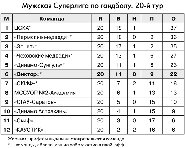 У «Виктора» тоже были свои проблемы. В лазарете находилось несколько игроков. К ним могла прибавиться еще парочка гандболистов, но они продолжали с микроповреждениями выступать на площадке. Ибо надо было биться за пятое место в плей-офф, расслабляться времени никто не давал.