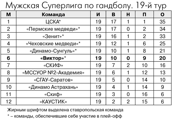 Этой победой ставропольский коллектив обеспечил себе «де-юре» место в плей-офф. Следующий матч наши гандболисты проведут уже совсем скоро. 7 марта им предстоит выезд в Астрахань к местному «Динамо». Поддержать команду отправится сотня болельщиков. Затем наступит небольшая пауза, которую «Виктор» проведет в подготовке к концовке сезона. А уже 26 марта в Ставрополе будет разыграна пятая строчка по итогам «регулярки». В гости к «южным слонам» пожалует «Динамо-Сунгуль». В последний день месяца в краевой столице впервые состоится матч
