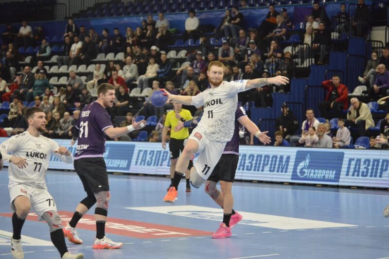 Начались гандбольные качели. У ставропольцев в этот игровой момент на авансцену вышел правый крайний Тимофей Масленников, который в своё время играл за «Чеховских медведей». Да, ему не удалось реализовать пенальти. Зато как он действовал потом! Дважды подряд переиграл вратаря хозяев Артёма Грушко при атаке со своего края, затем классно открылся на позиции линейного, отправив мяч в сетку ворот.