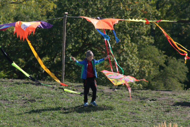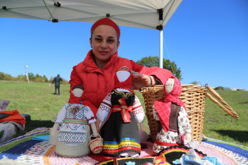 Под льющуюся музыку ветра участники с опытными наставниками запускали воздушных змеев с самой высокой точки поляны Татарского городища. С неё открылся вид на многочисленные ремесленные и творческие мастерские, спортивные игры и детские развлекательные зоны. У мастериц можно было приобрести сумочки, шапочки, украшения и мыло ручной работы. Меня потянуло к бегемотикам, лисам, козликам и фантастическим персонажам. Оксана Мягких с мужем и сыном из села Безопасного показала чудесные игрушки для детей от трех лет, отличную альтернативу магазинным. Она дивилась: «Сколько у вас тут мастеров и плетут, и точат, чего только не делают! Я в 30 лет купила набор по вязанию для начинающих, и поначалу не получалось. Но потом руку набила, могу одну игрушку связать за полдня. Супруг делает бусины и браслеты из дерева. В четвертый раз здесь. В свободное время идем на мастер-классы по росписи, на фудкорт». Их 9-летнему сыну Яромиру на фестивале понравились изделия из глины, посуда. «С папой мы учились делать ёжика, забрали его домой. Больше всего мне хочется научиться делать технику. Я, когда вырасту, буду механиком. А еще сегодня мне понравилась здесь музыка».