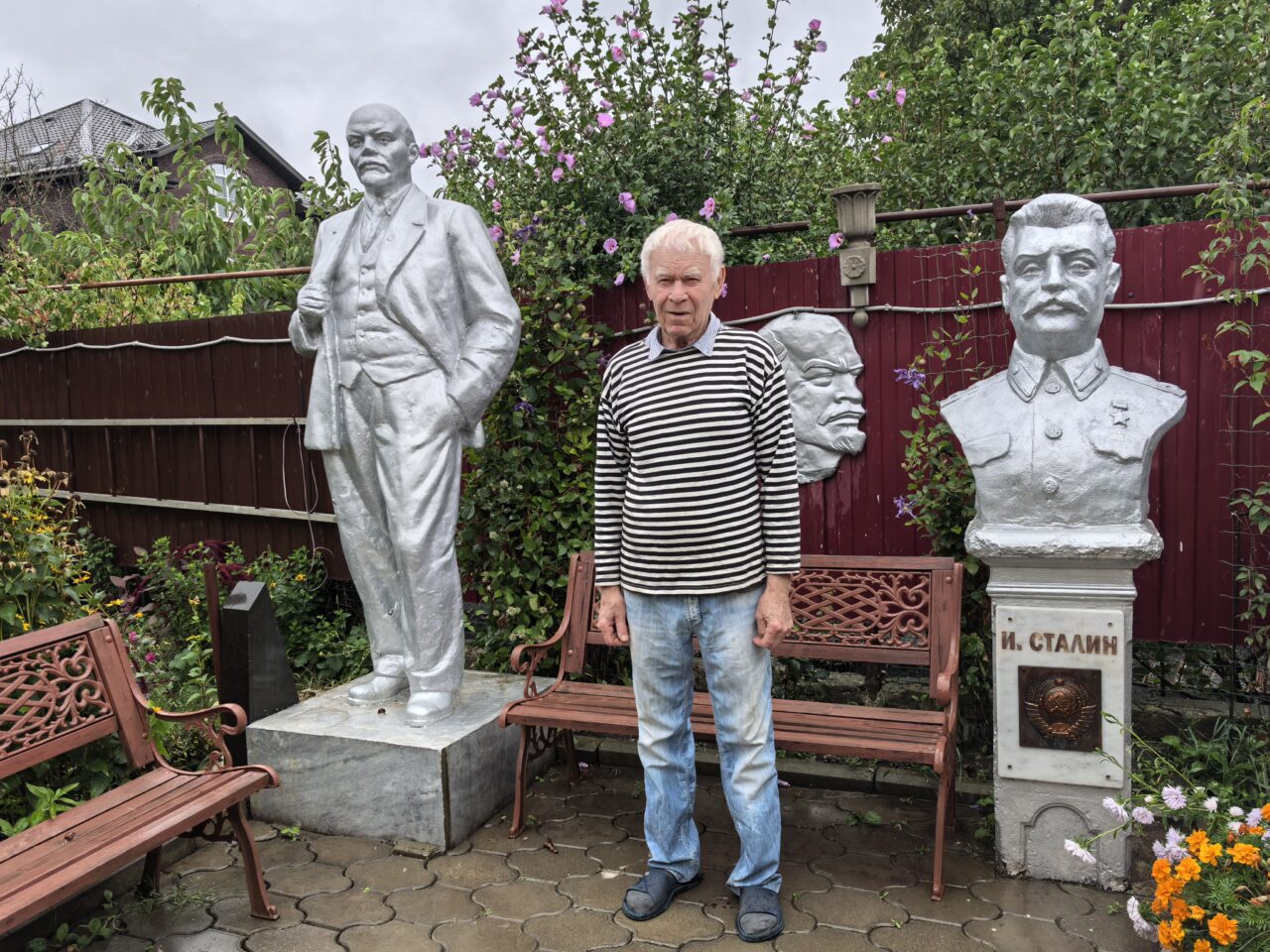 Алексей Иванович как опытный экскурсовод поведал, что это за достопримечательности и как они попали к нему. Все скульптурные произведения соцреализма в начале 90-х угодили на «свалку истории». И это не фигура речи, а реальность. Гранитный Ленин долгое время стоял в родном селе Алексея Рындина, в Доме культуры. У дочери Татьяны с этой скульптурой связаны романтические воспоминания: со своим будущим мужем Николаем они прятались от посторонних глаз и целовались за спиной Ильича. В 90-х от памятника поспешили избавиться, убрать его с глаз долой. Трудно представить, сколько усилий потребовалось Алексею Ивановичу, чтобы доставить эту махину в Ставрополь и установить возле дома.