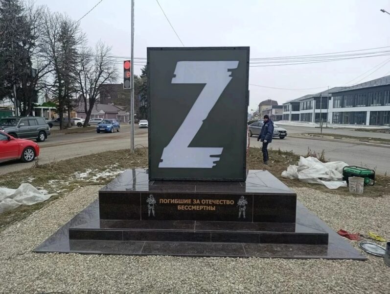 В сквере «Пограничный» в 11 часов утра понедельника торжественно открыли скульптурную композицию, украшенную символическими знаками Z и V в поддержку военнослужащих РФ и народного единства.