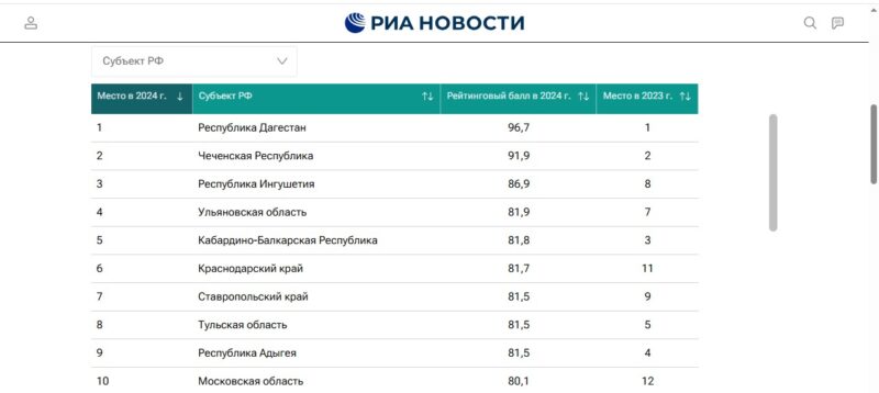 Ставрополье в итоге вошло в ТОП-10 регионов страны. Примечательно, что республики СКФО – Дагестан, Чечня и Ингушетия оказались лидерами – именно в такой последовательности. Из соседей опередили нас также КБР (5-ая строчка) и Краснодарский края (6 место).