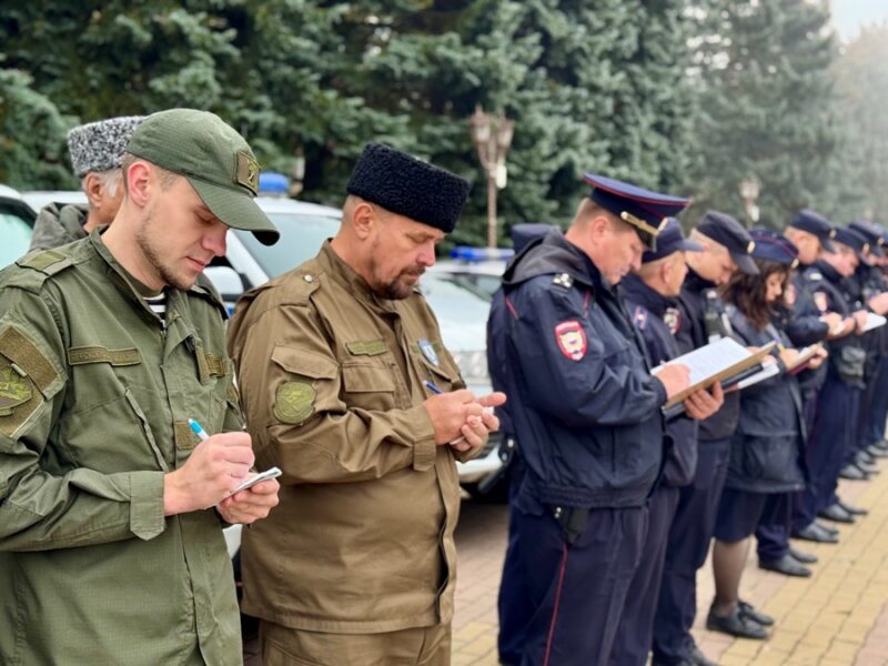 В строй стали задействованные в обеспечении общественного порядка наряды полиции, сотрудники Росгвардии, казаки и народные дружинники.