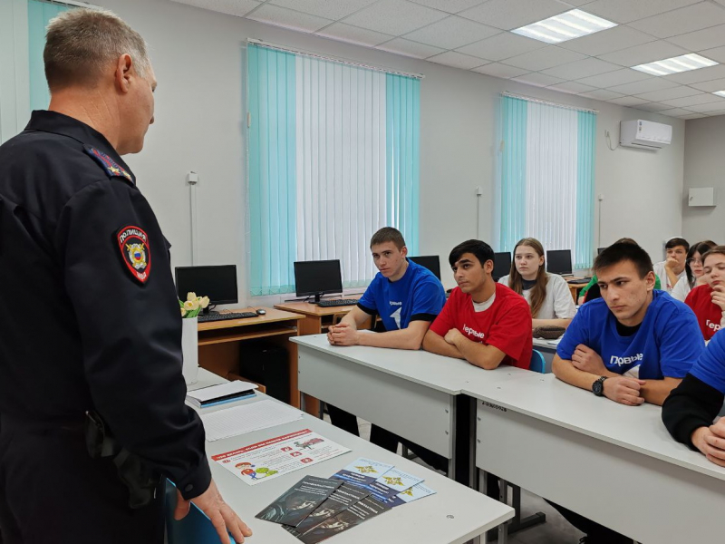 Полицейский довел до участников Общероссийского общественно-государственного движения детей и молодежи изменения в порядке приема на службу в правоохранительные органы, поведал о социальных гарантиях, льготах и перспективах службы, возможности поступить учиться в образовательные организации системы МВД России.