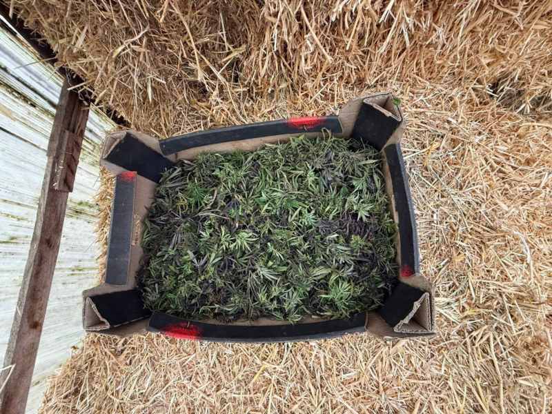 Информация нашла своё подтверждение. При обследовании территории частного домовладения в теплице на стоге сена сотрудники правоохранительных органов увидели картонный ящик с веществом серо-зеленого цвета. Экспертизой позже было установлено, что изъятым является марихуана. В полицейском участке подозреваемый рассказал, что сорвал дикорастущее растение недалеко от своего дома, высушил и хранил «травку» для личного употребления.