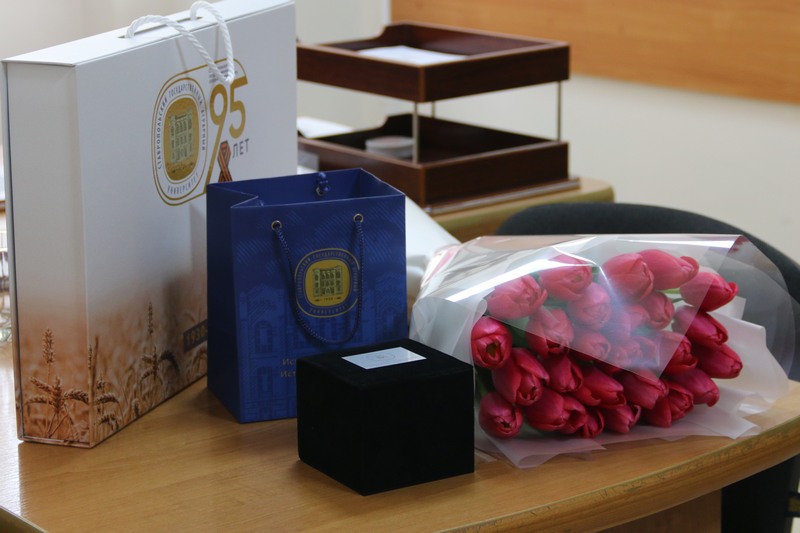 В преддверии Международного женского дня и 90-летнего юбилея со дня образования Госавтоинспекции России член Общественного совета при ГУ МВД по краю Владимир Ситников вручил красивой женщине в погонах цветы и памятные подарки за её многолетнюю добросовестную службу.