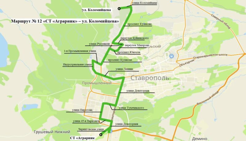 Маршрут №12 соединит садоводческое товарищество «Аграрник» и улицу Коломийцева, автобусы ходят каждые 15-20 минут в рабочие дни и каждые 20-35 минут в праздничные и выходные дни.